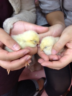 物品協賛を取りに行き、ひよこと戯れたり...