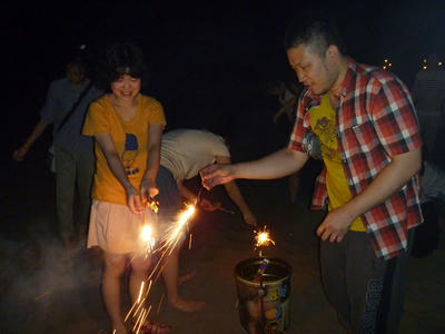 夜には花火大会を行いました。